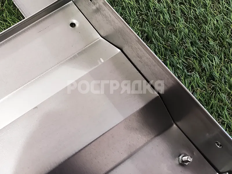 Модель изготовлена из высокопрочного металла толщиной в 0,5 мм. Для дополнительного усиления используются ребра жесткости в количестве 16 шт. Через каждый 1 метр имеется планка-стяжка, обеспечивающая сохранность конструкции и ее способность демонстрировать заявленные эксплуатационные характеристики на протяжении всего срока службы.